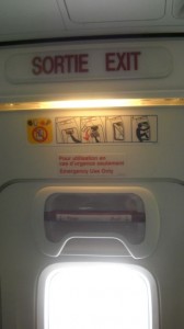 Bref nous avons les places 15D et 15E donc la lourde responsabilité d’ouvrir la sortie de secours en cas d’urgence !!!